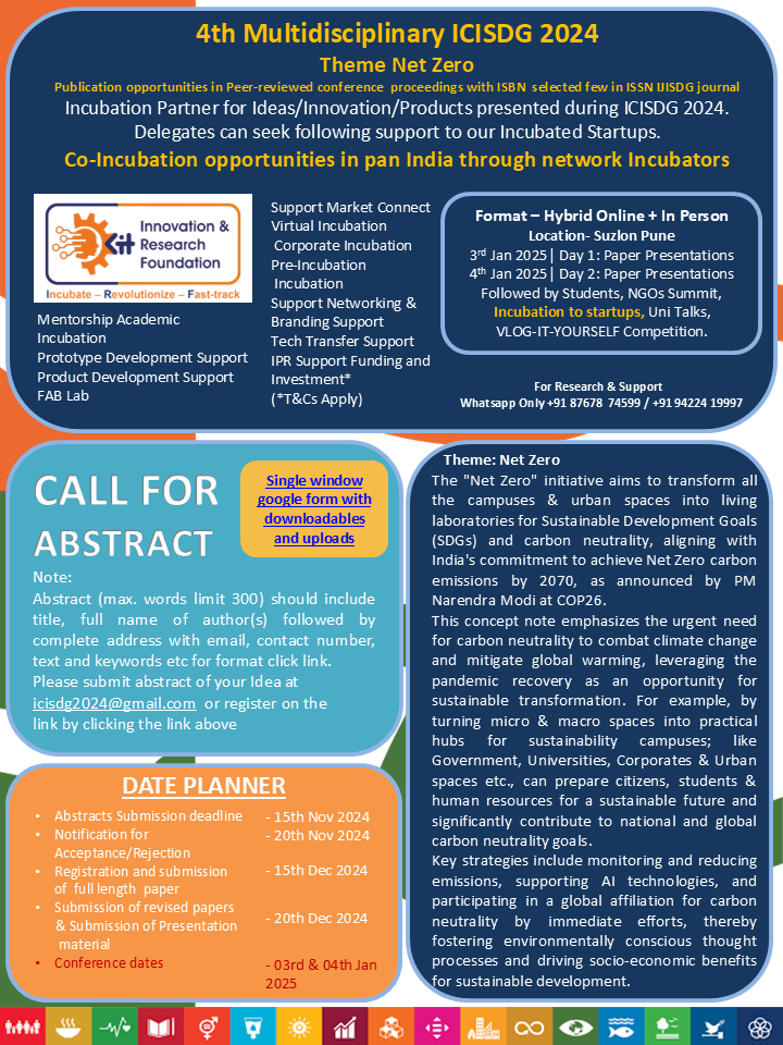 Please submit abstract of your Idea at icisdg2024@gmail.com or register on the link by clicking the link below